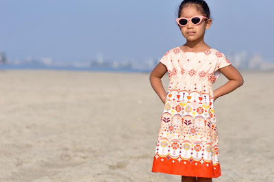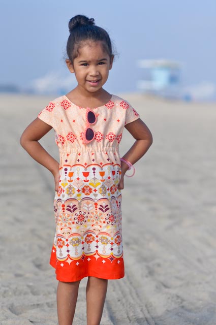 I sewed up another Roller Skate dress for Julia, and took her to the beach for some photos to send to the grandparents.  My parents are old-school - I email them photos, and they print them on their computer.  I thought it would be nice to actually print some and send them to them by actual mail for a change....